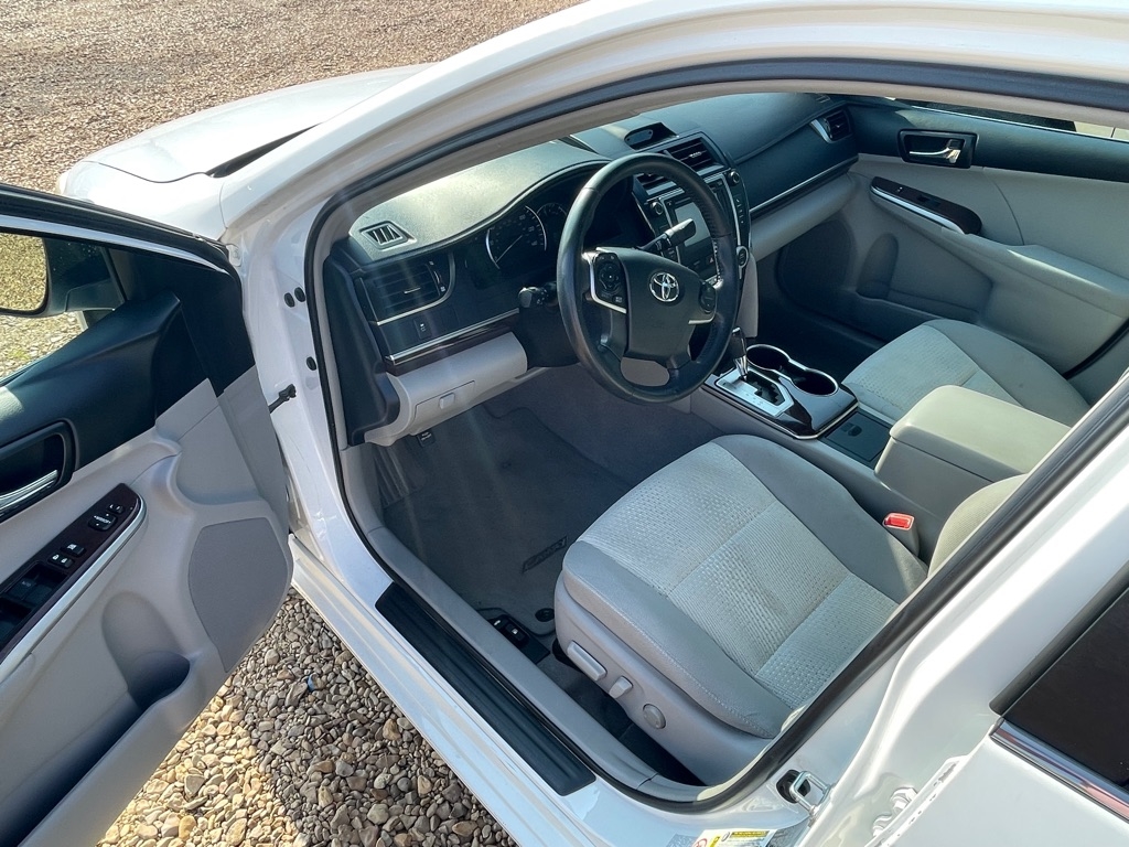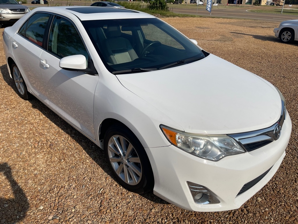 Immerse yourself in the sleek sophistication of this white 2012 Toyota Camry, a vehicle that seamlessly marries style with functionality. Just slide into the driver's seat, and you'll immediately notice the supportive and comfortable leather seats that hug you in all the right places for a smooth ride ahead.